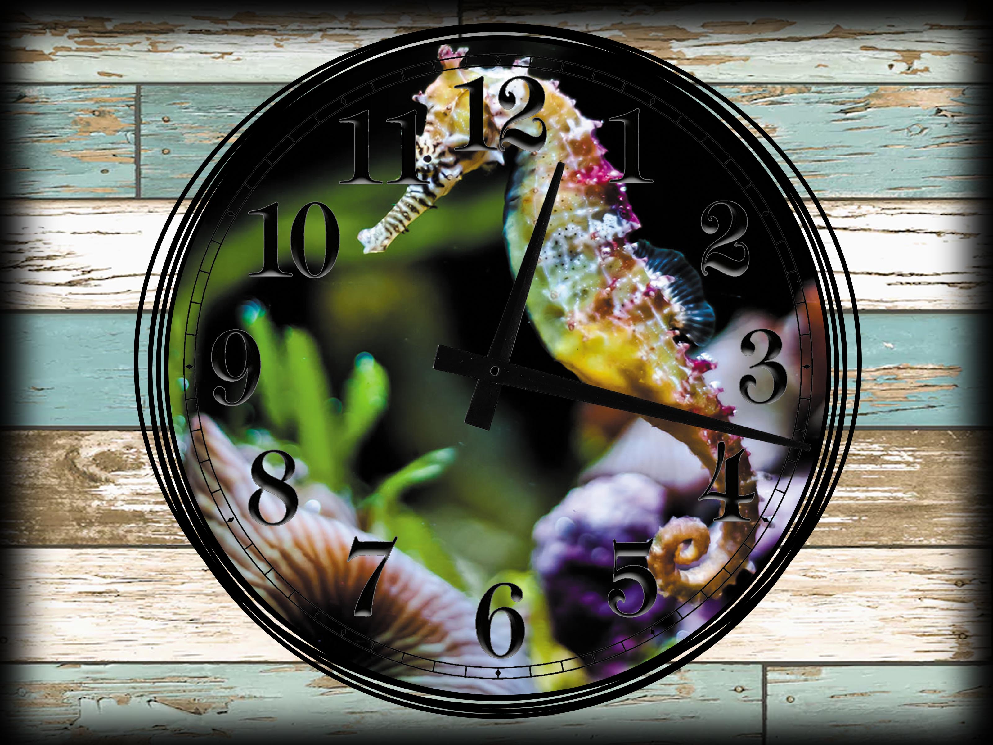 Large Teal White Wood Grain Wall Clock On Canvas Art Seahorse Colorful Seashells Coral Sea Life Scene 12 X 16 Inch Wall Decor Walmart Com