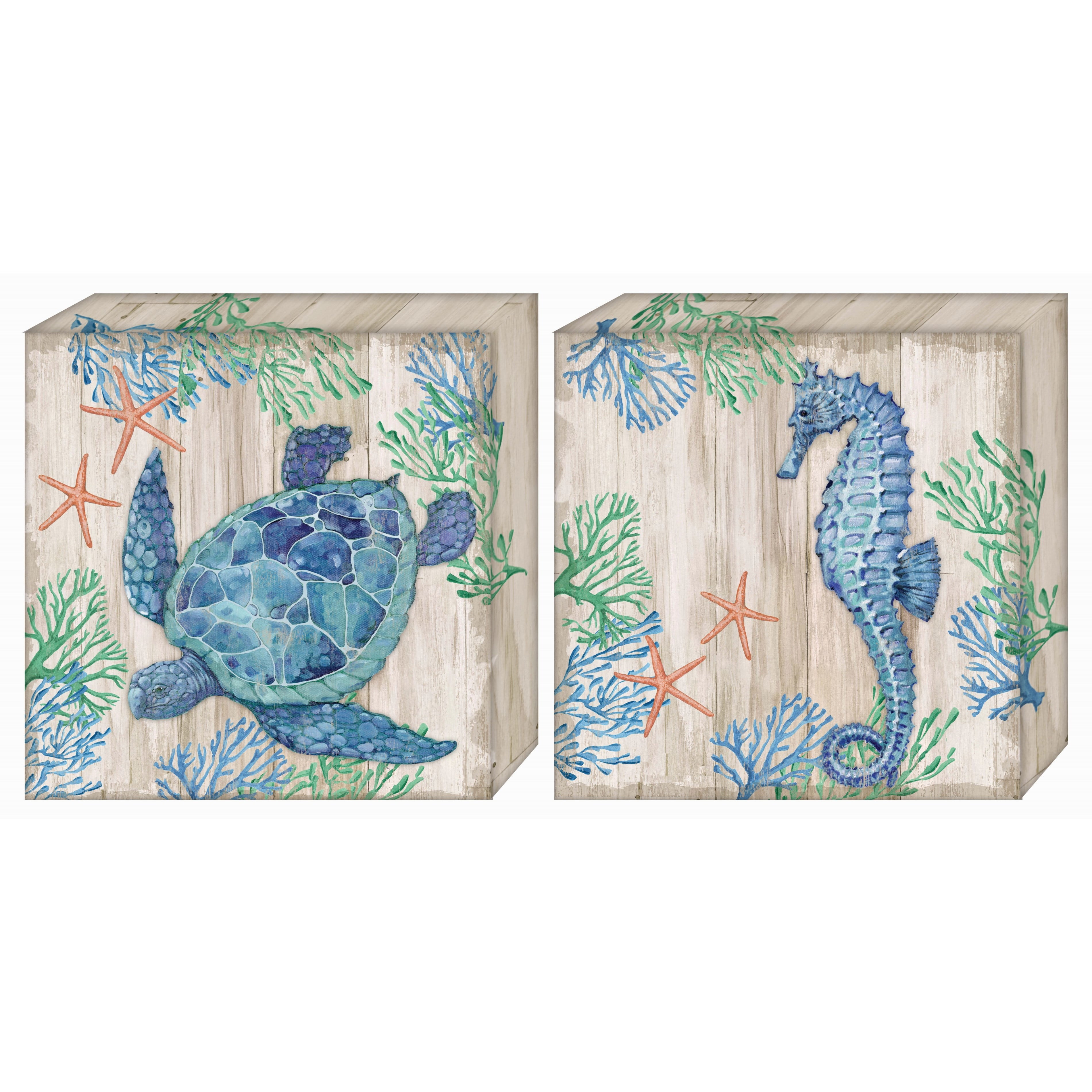 Turtle Sea Horse 12 0 In X 12 0 In Coastal Painting Canvas Art Prints By Prinz Set Of 2 Walmart Com