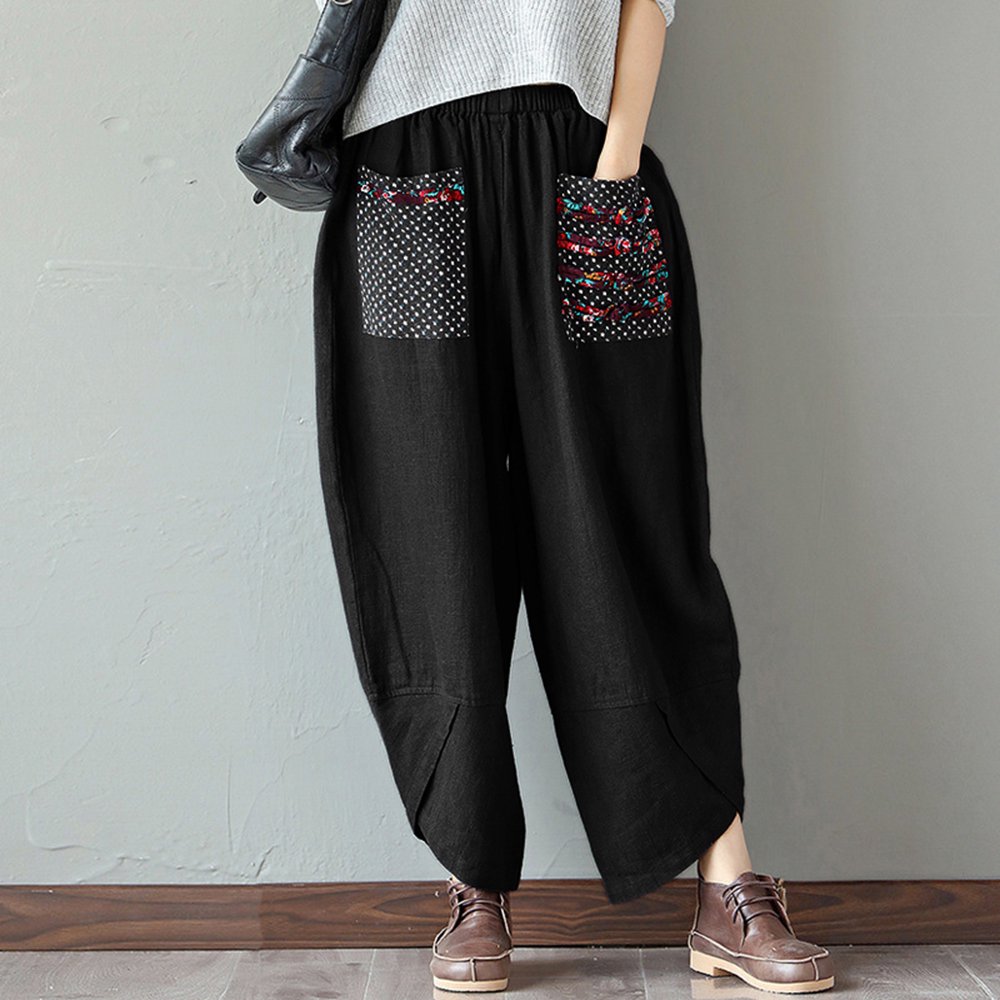 Vintage Women Ethnic Splicing Harem Pants Elastic Waist Wide Leg Trousers Baggy Loose Cotton Linen Pants Walmart Canada